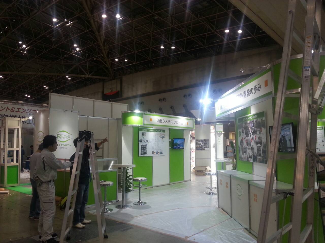 本日はブース作りに展示会スタッフ総出で取り組んでおります。