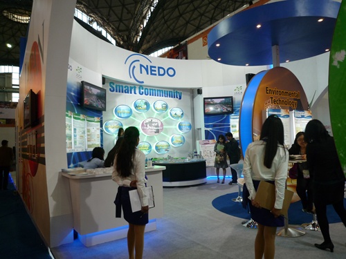 The exhibition demonstrates a variety of Japanese technology regarding environmental management and energy savings. The cute elephant character from some company often bumps into the passerby so be careful when you go by it!